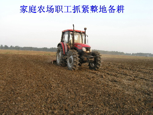 潘村湖农场今年秋收工作已基本结束。为高质量地完成秋种任务,如期实现小麦高产攻关目标,该场广泛宣传发动,积极做好秋播备耕工作。连日来,广大家庭农场职工按照小麦高产栽培规程要求,抓紧秋播备耕。秋种所需化肥油料已陆续备齐;种子由场种子公司统一供应;去年没有进行土壤深松作业的家庭农场纷纷主动联系深松机械;还有的家庭农场进行了旋耕作业,只待播期一到立即播种。目前,该场秋种各项准备工作已基本就绪。图为10月10日下午,五分场一户家庭农场正在旋耕整地的情景。(杨登宏)