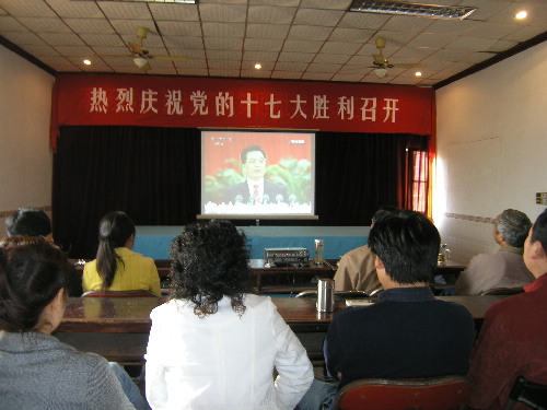 潘村湖农场:农场干群关注“十七大”