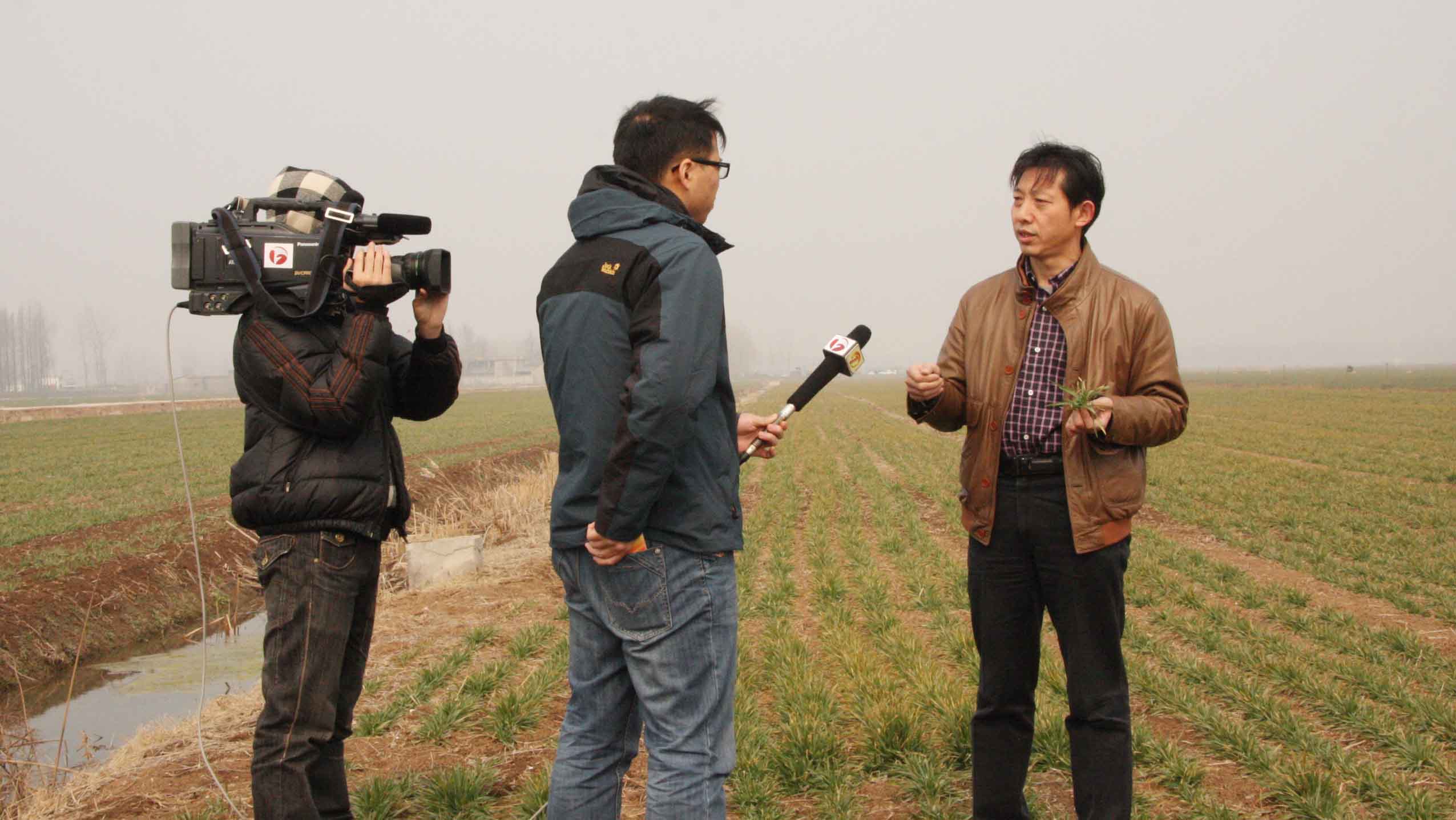2月17日,安徽电视台第一时间栏目记者到寿西湖农场采访小麦抗旱和田管工作。李先金副场长在小麦喷灌现场接受采访,全面介绍了寿西湖农场自去年小麦秋种以来,全场动员抗旱出苗、保苗、促苗等各项工作的具体措施及取得的成效。