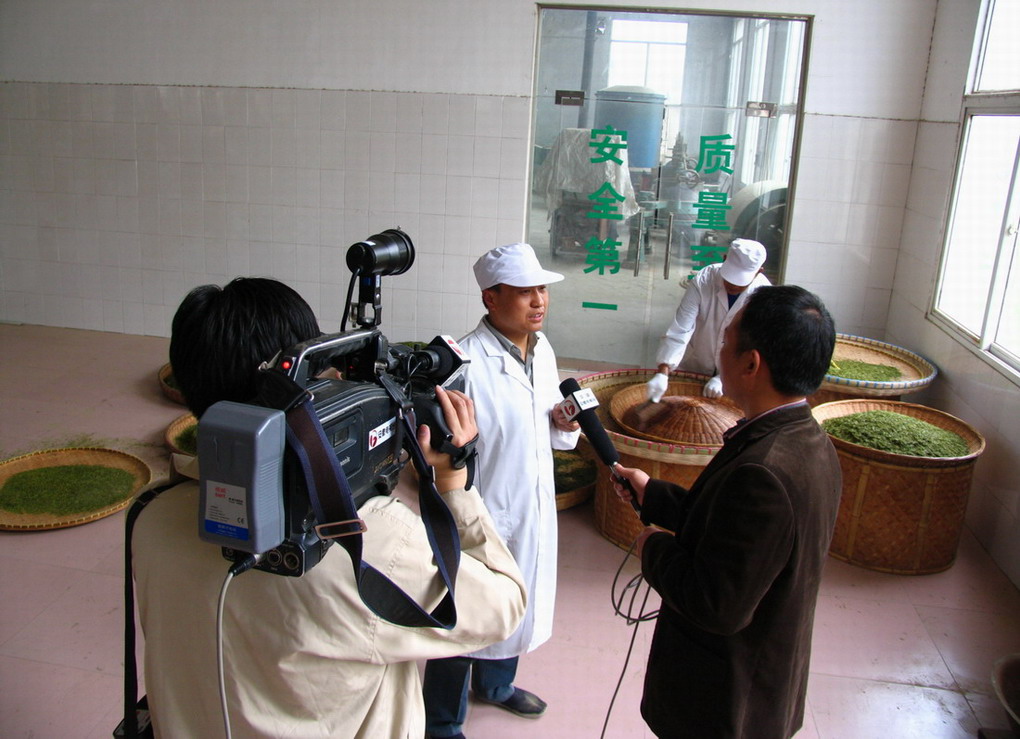 49-10日,安徽电视台安徽农垦集团《安徽新闻联播》栏目组一行四位记者,到皖垦茶业集团采访春茶生产。清明时节,皖南春光明媚,江南诗山敬亭山杜鹃胜火,茶香醉人。在皖垦茶业集团敬亭山茶场,采访组先后深入茶园田间和生产车间,拍摄历史文化名茶敬亭绿雪的采茶和制作场景。在敬亭绿雪原生茶园、敬亭绿雪公司清洁化生产车间和茶林间作的生态茶园白茶基地,记者们兴致盎然,流连忘返,摄下了一组组美丽而珍贵的镜头。摄制组还现场采访了绿雪公司负责人及前来采购敬亭绿雪的客商等,重点采访和拍摄了敬亭绿雪产品质量追溯流程情况。