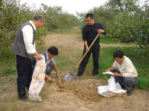 10月17-18日,砀山果园场组织全场技术人员对80个林眼进行取样测土,借以了解近几年土壤中氮、磷、钾等各类元素含量,为今后果园配方施肥打好基础。