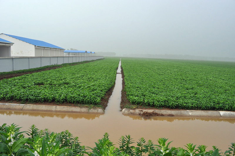 潘村湖农场:“麦德姆”过境 大田积水抢排归槽
