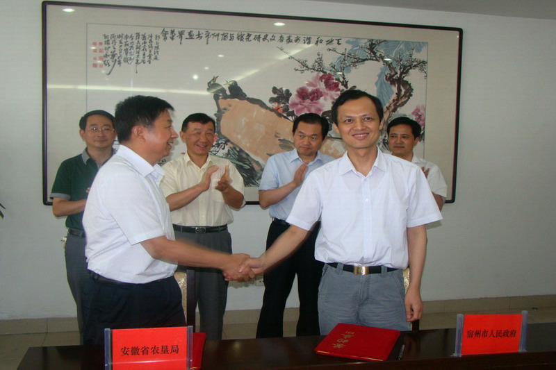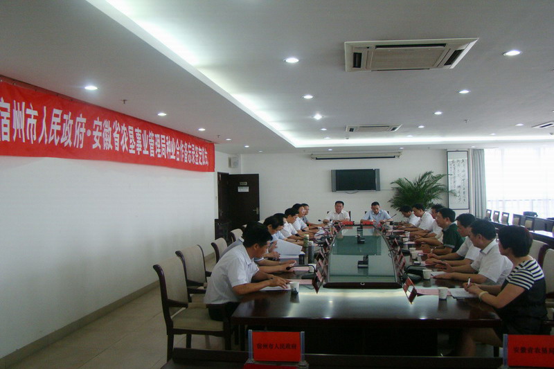 为进一步深化垦地合作内容,在20101029日安徽农垦与宿州市的战略合作框架协议基础上,经过多轮洽谈,711日上午,省农垦集团(省农垦事业管理局)与宿州市人民政府签订了种业合作备忘录。